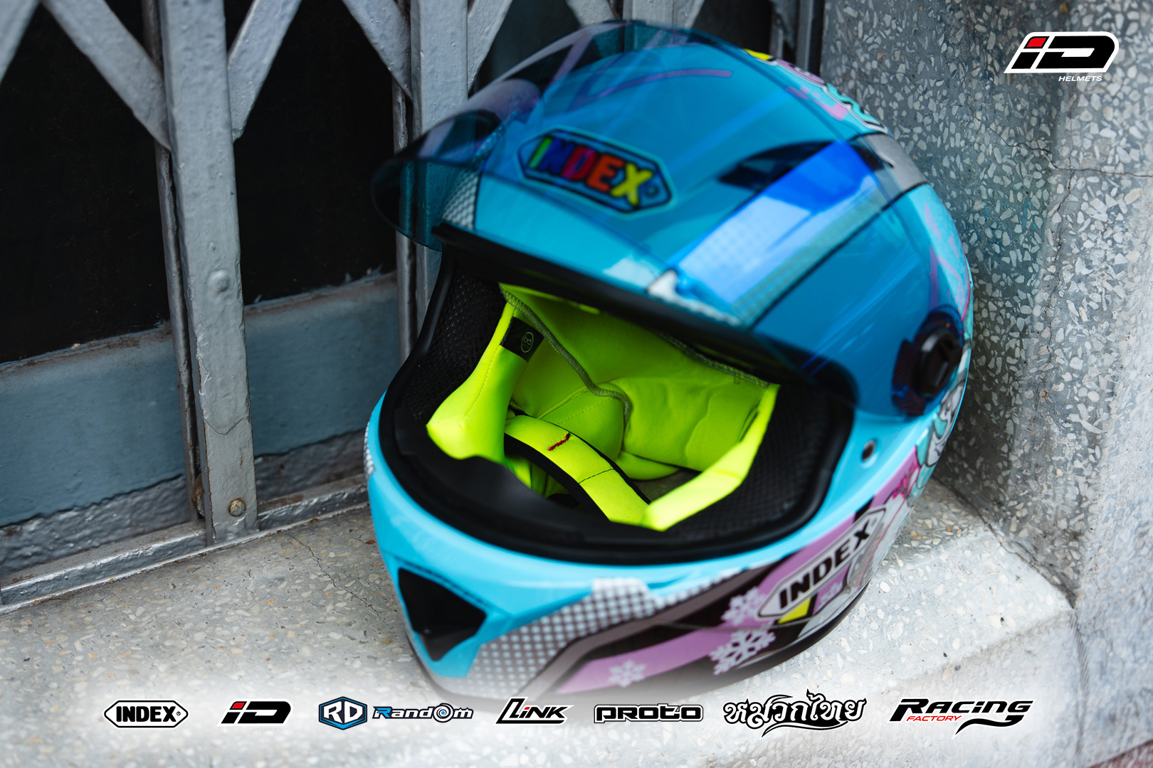 Explore our gallery to see the Index Zyra helmet from every angle, showcasing its sleek design and vibrant colors. Click on each image for a closer look.